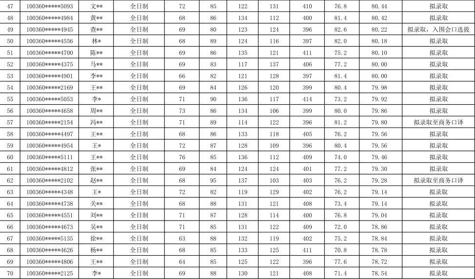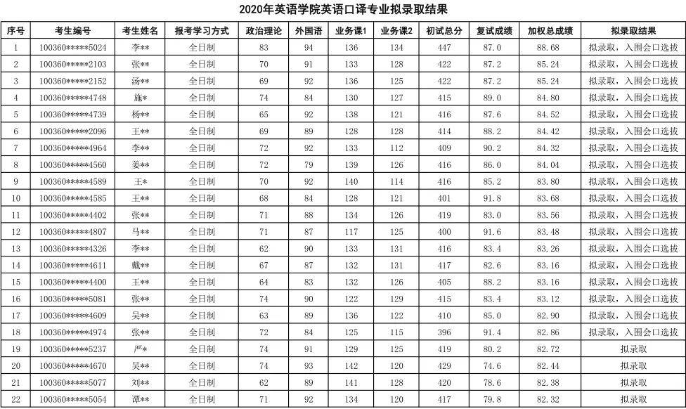 对外经济贸易大学英语口译2020年硕士研究生录取名单