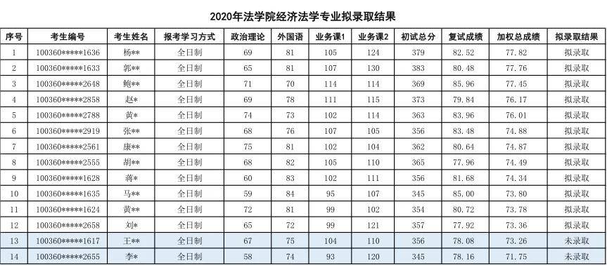 对外经济贸易大学经济法学2020年硕士研究生录取名单