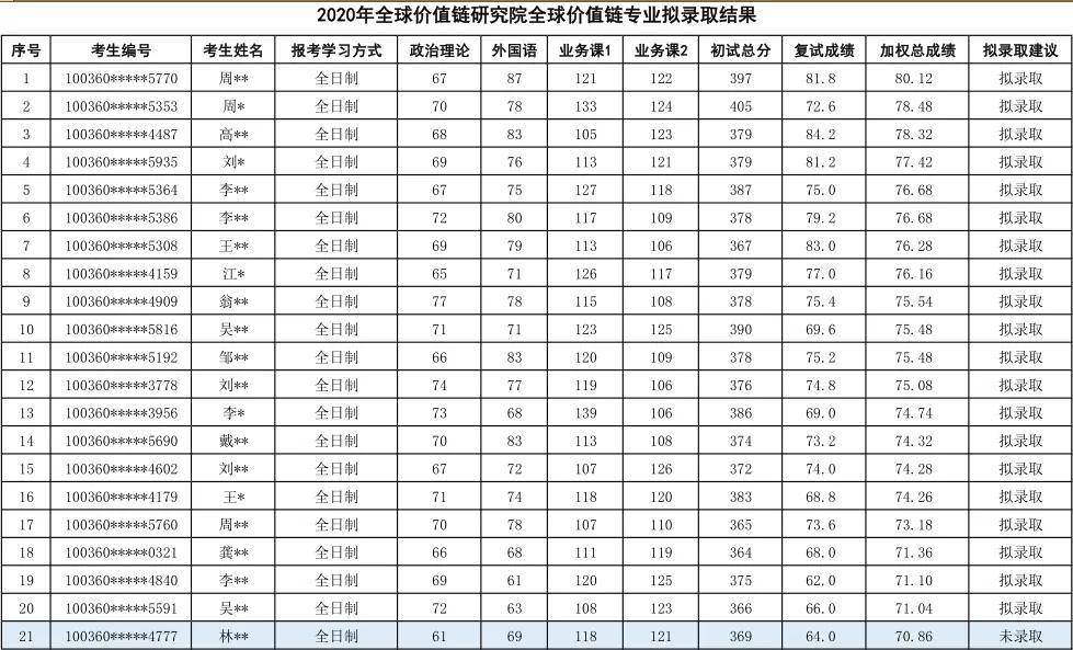 对外经济贸易大学全球价值链2020年硕士研究生录取名单