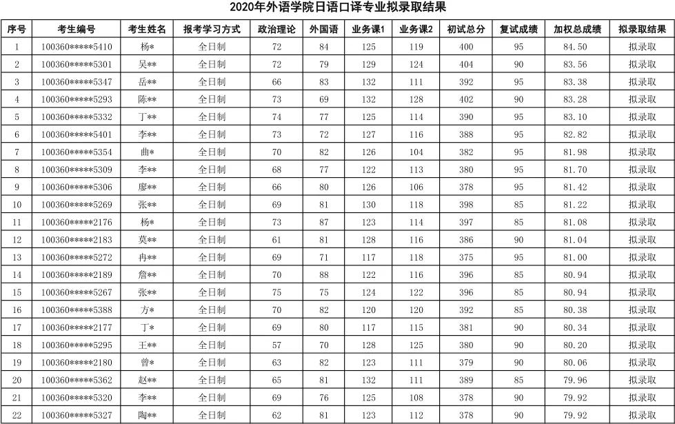 对外经济贸易大学日语口译2020年硕士研究生录取名单