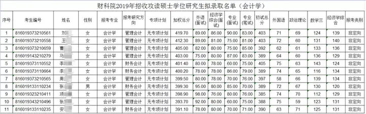 19年录取名单: