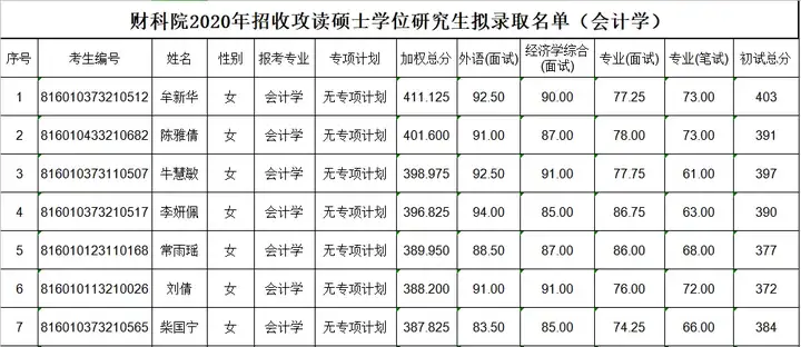 20年录取名单: