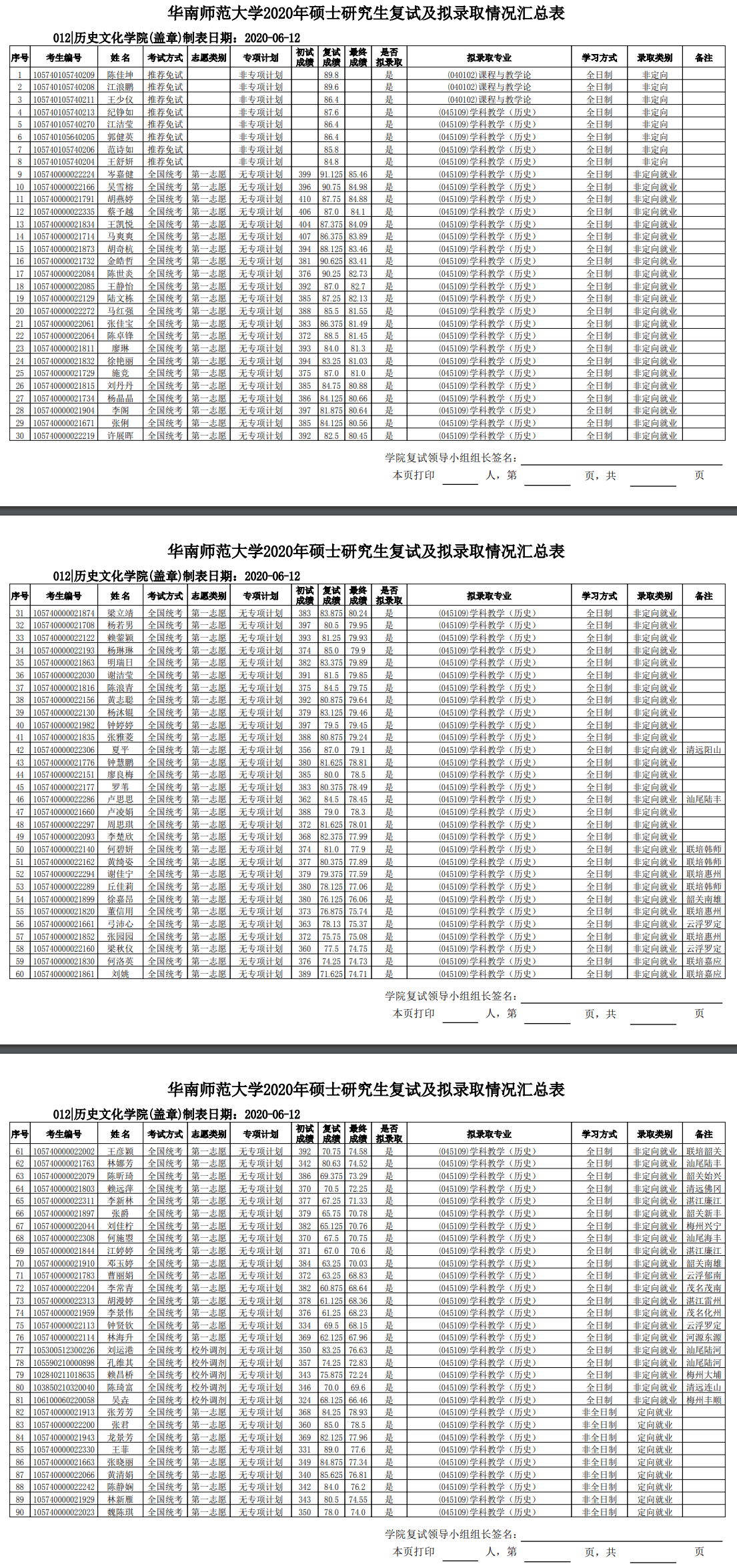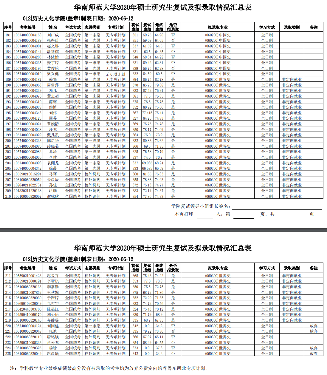 华南师范考研辅导班:2020年华南师范大学历史文化学院硕士研究生考研拟录取名单