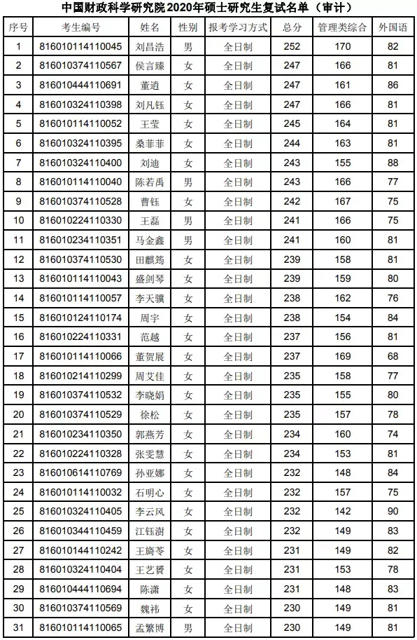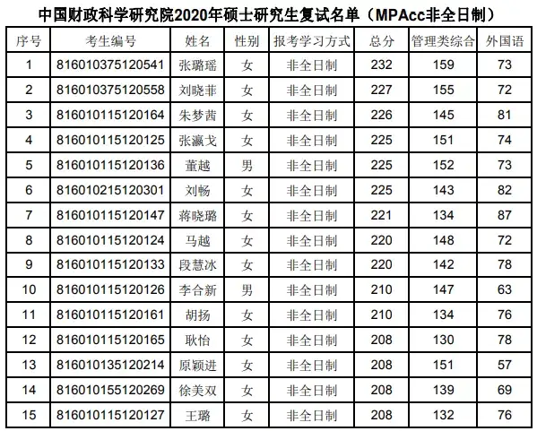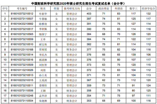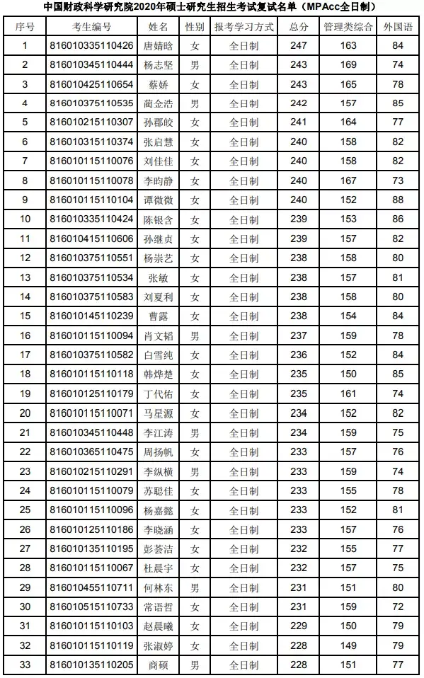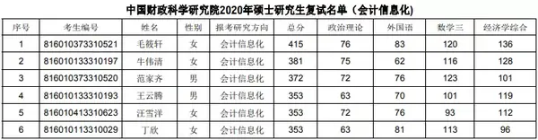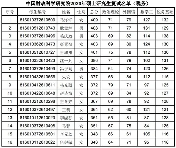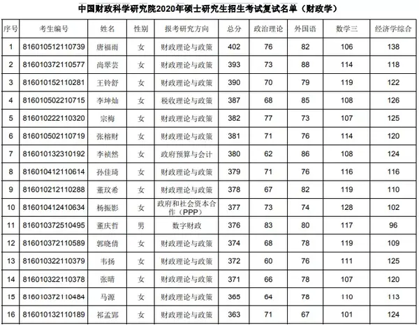 财科院考研辅导班:中国财政科学研究院2020年硕士研究生招生考试复试名单