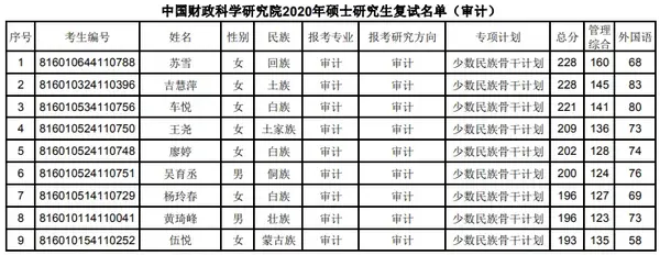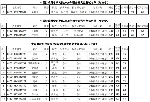 中国财政科学研究院2020年硕士研究生招生考试复试名单