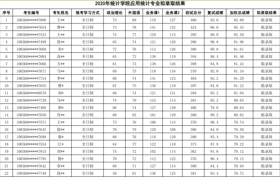 对外经济贸易大学应用统计硕士2020年硕士研究生录取名单