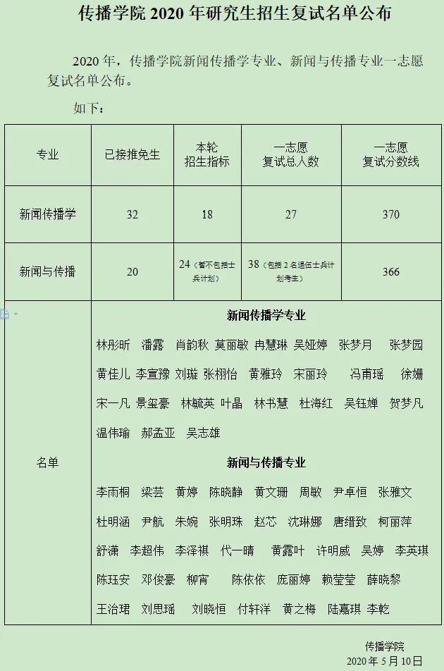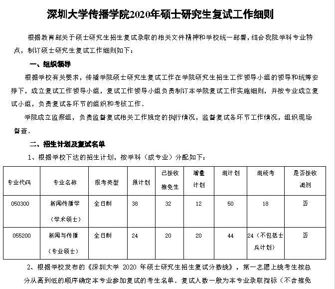新祥旭考研辅导班:2020年深圳大学传播学院硕士研究生复试细则、复试名单