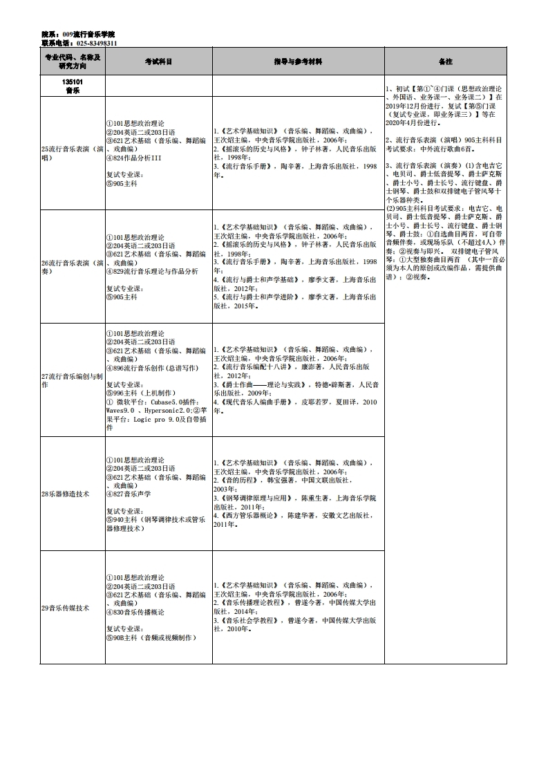南京艺术学院考研辅导:2020年南艺流行音乐学院全日制专硕研究生招生专业目录