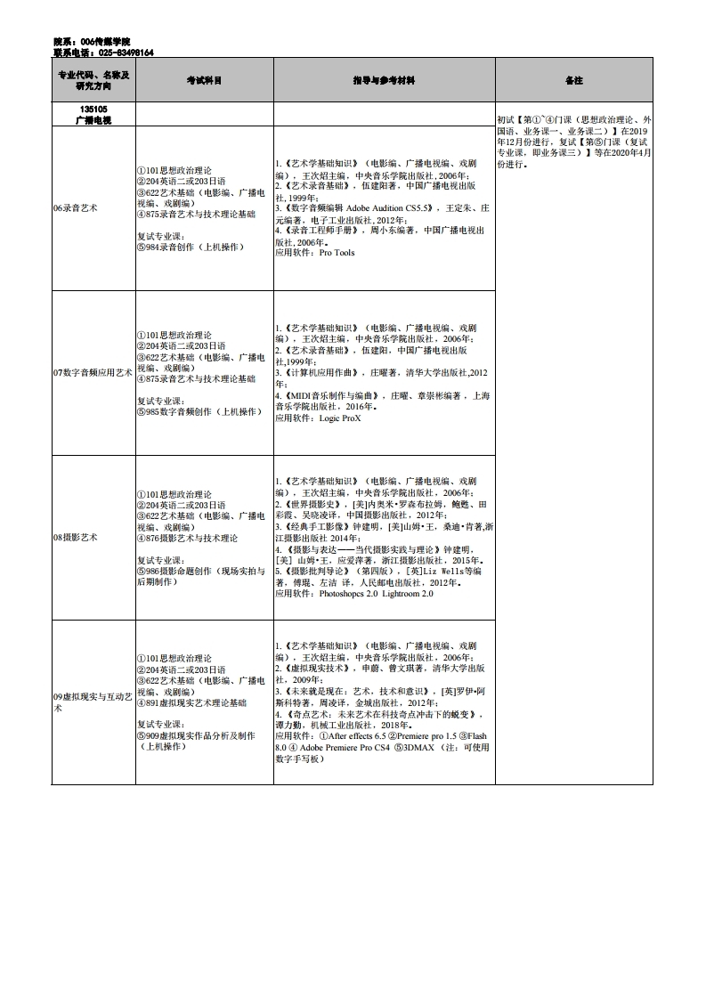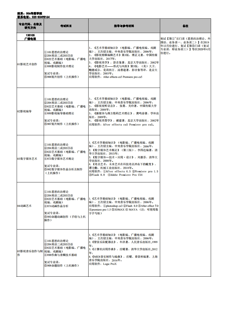 南京艺术学院考研辅导:2020年南艺传媒学院全日制专硕研究生招生专业目录