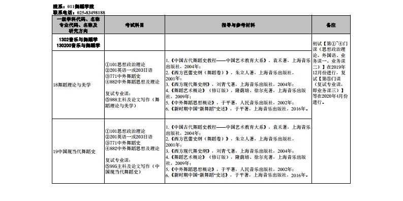 南京艺术学院考研辅导:2020年南艺舞蹈学院全日制学硕研究生招生专业目录
