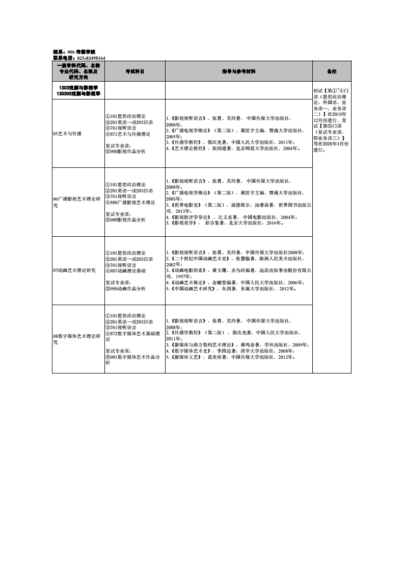 南京艺术学院考研辅导:2020年南艺传媒学院全日制学硕研究生招生专业目录