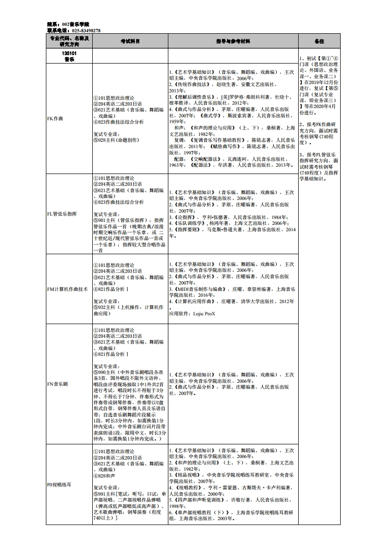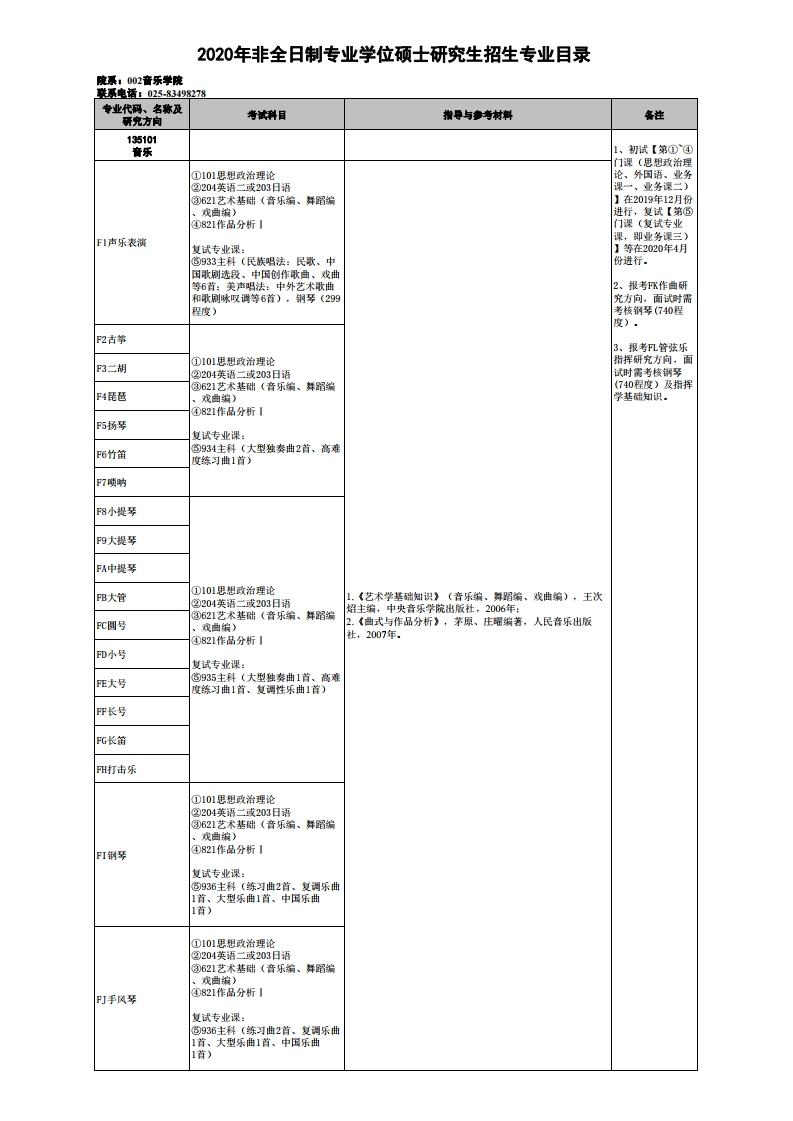 南京艺术学院考研辅导:2020年南艺音乐学院非全日制专硕研究生招生专业目录