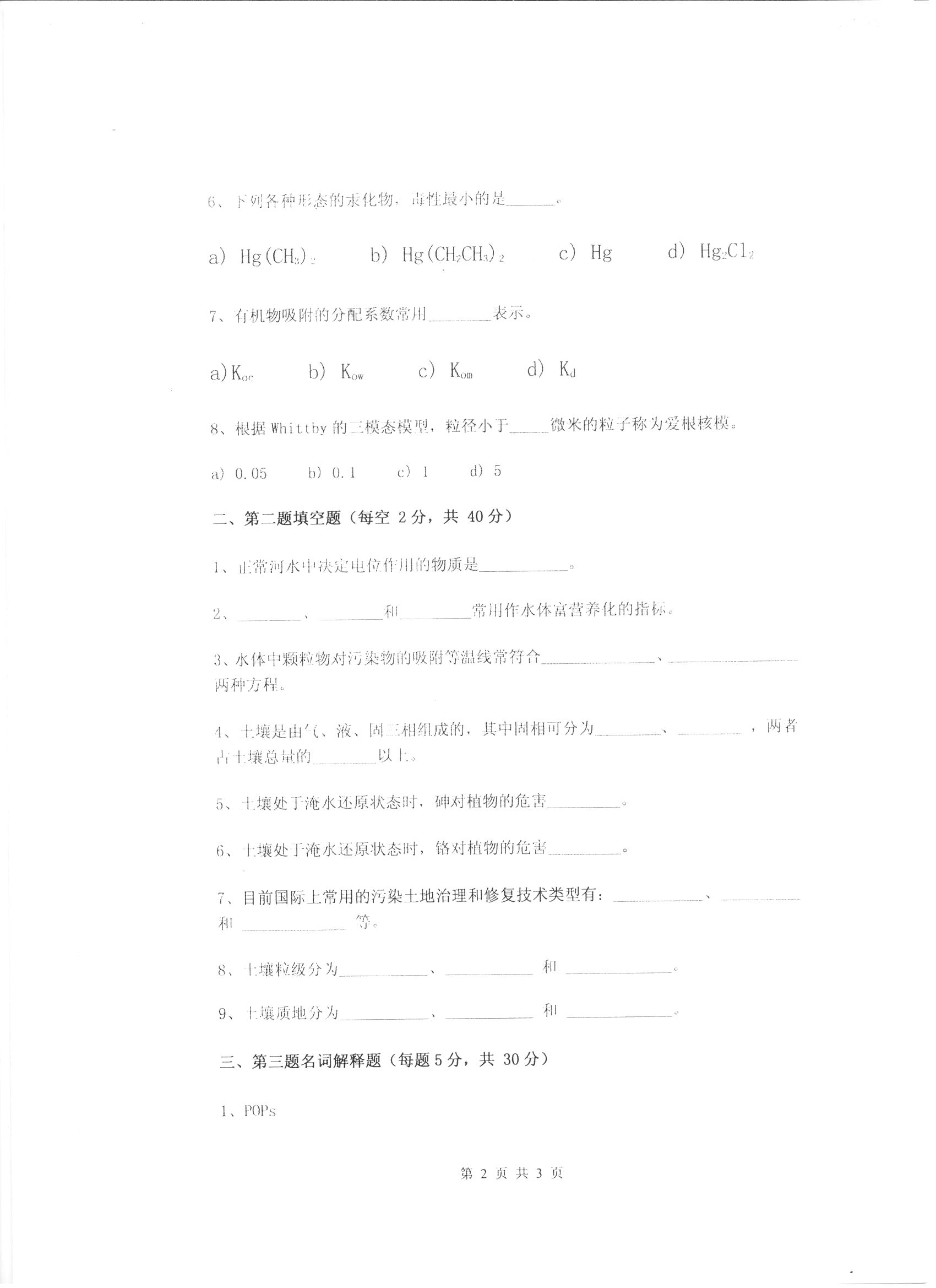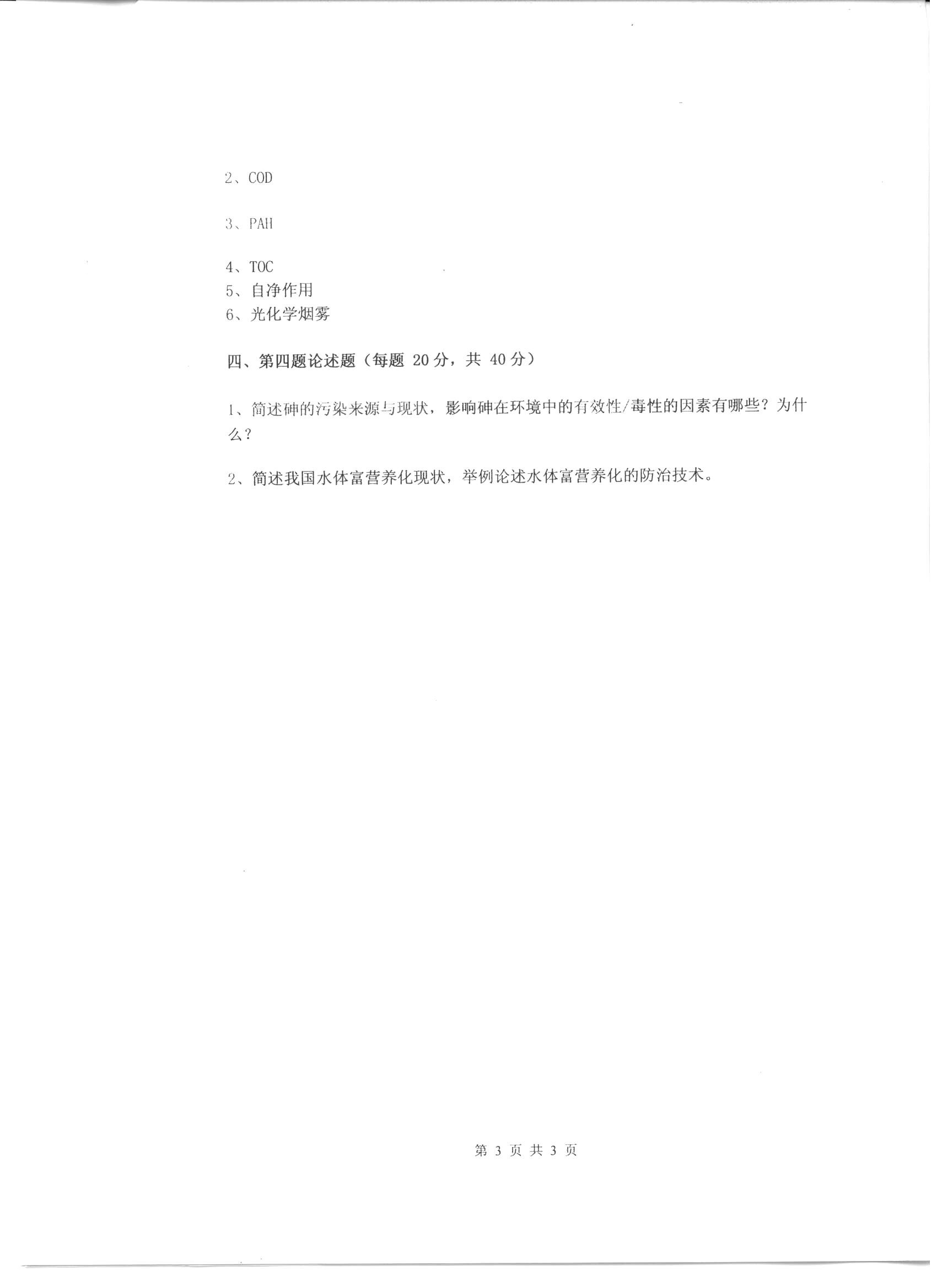 杭州电子科技大学考研辅导班:杭州电子科技大学2011年研究生入学考试环境学科目考试题目
