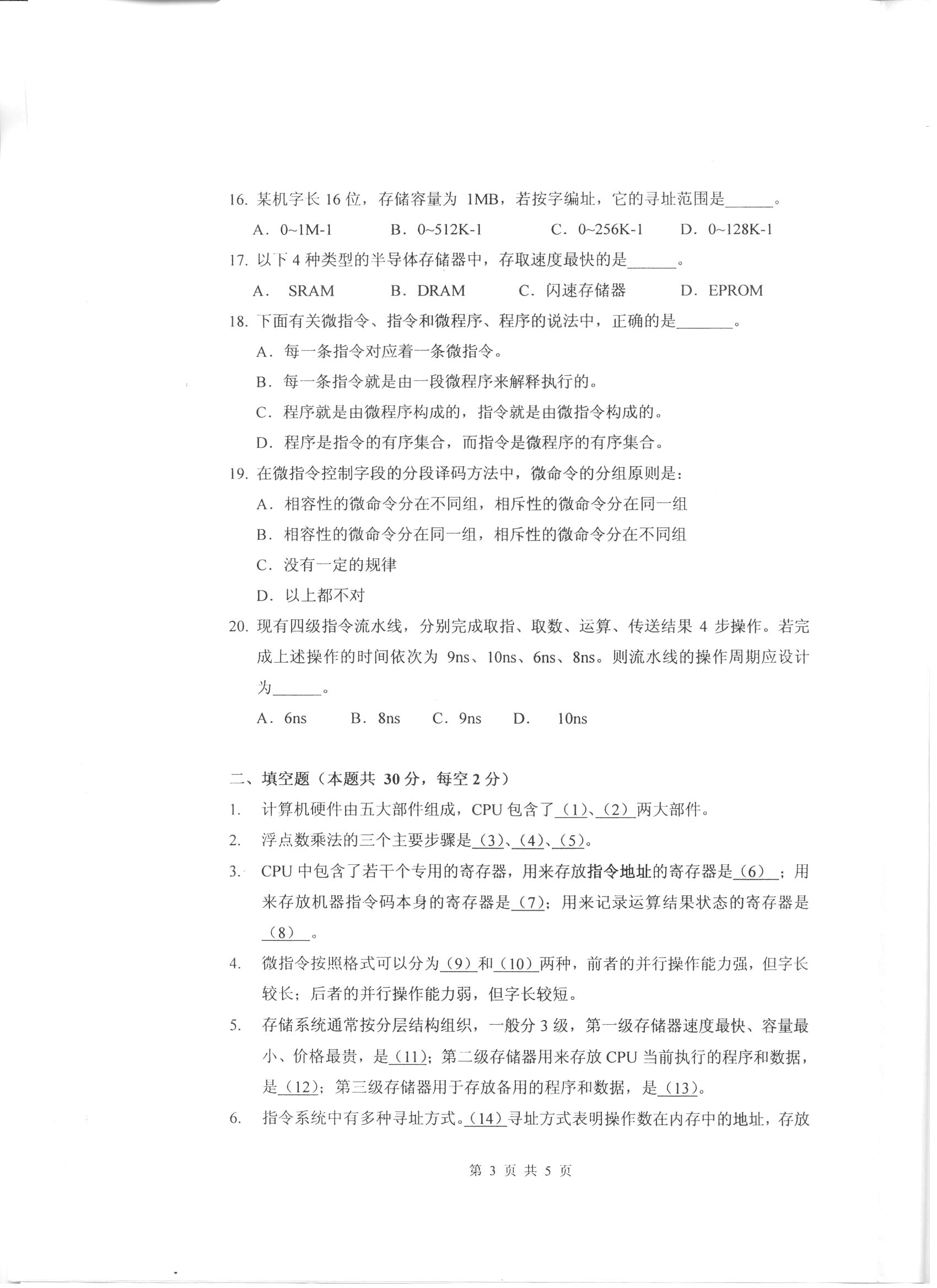 杭州电子科技大学考研辅导班:杭州电子科技大学2011年研究生入学考试计算机组成原理科目考试题目