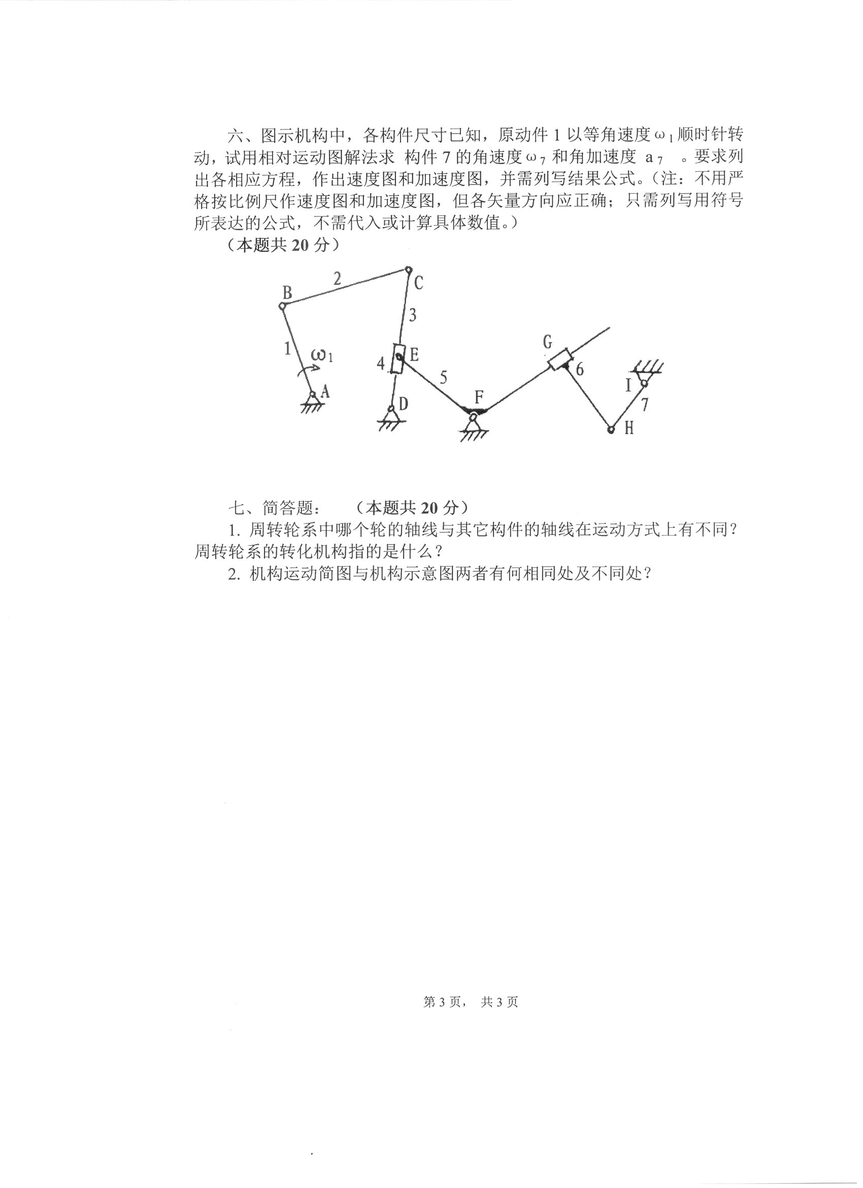 杭州电子科技大学考研辅导班:杭州电子科技大学2017年研究生招生考试机械原理科目考试题目