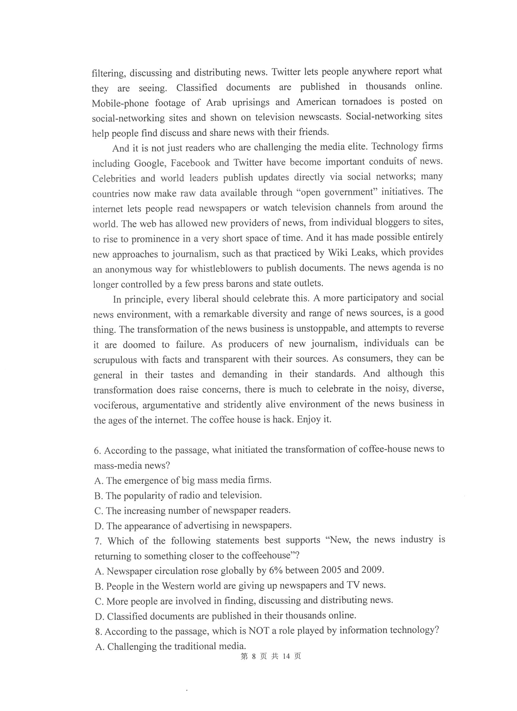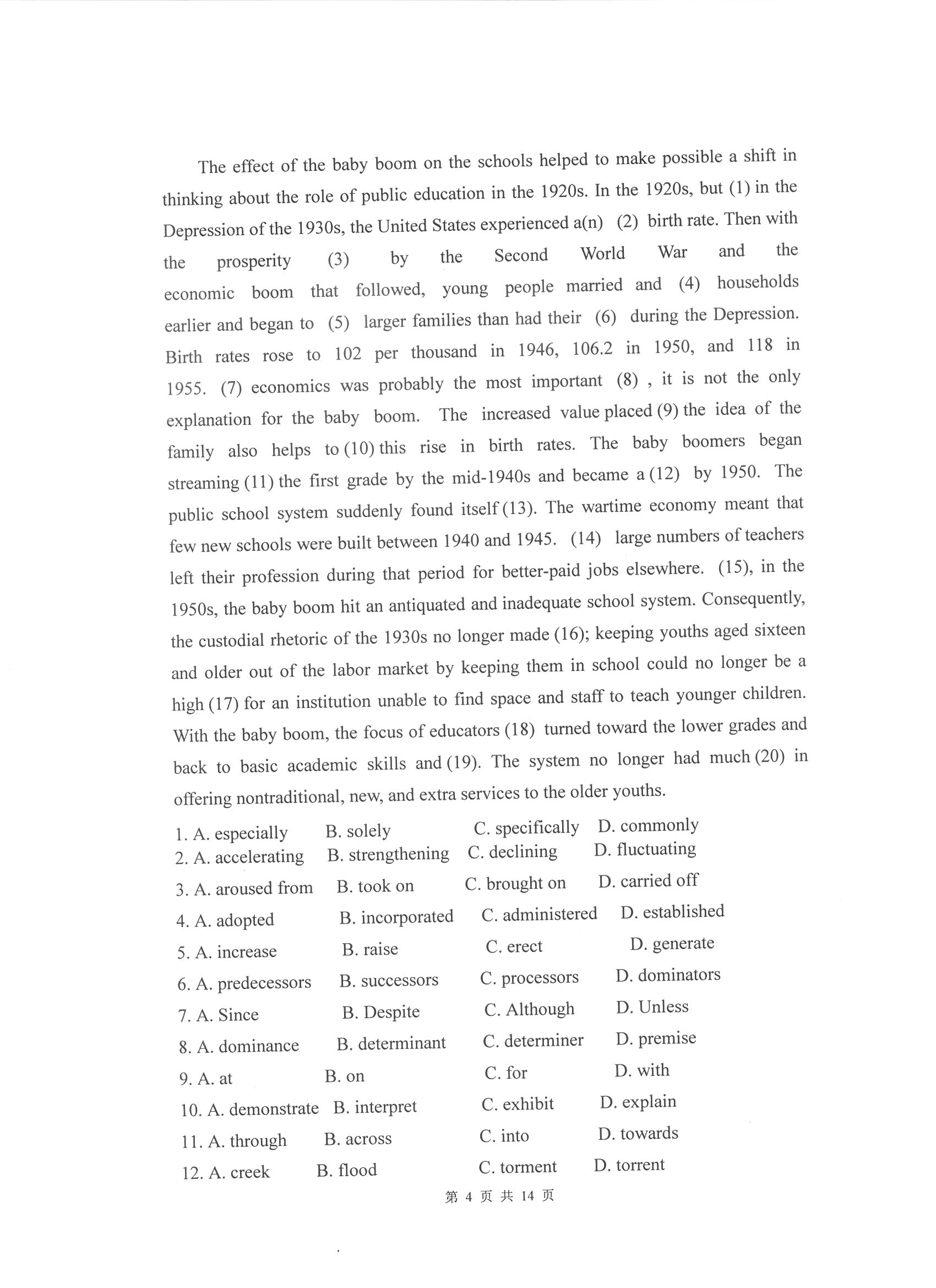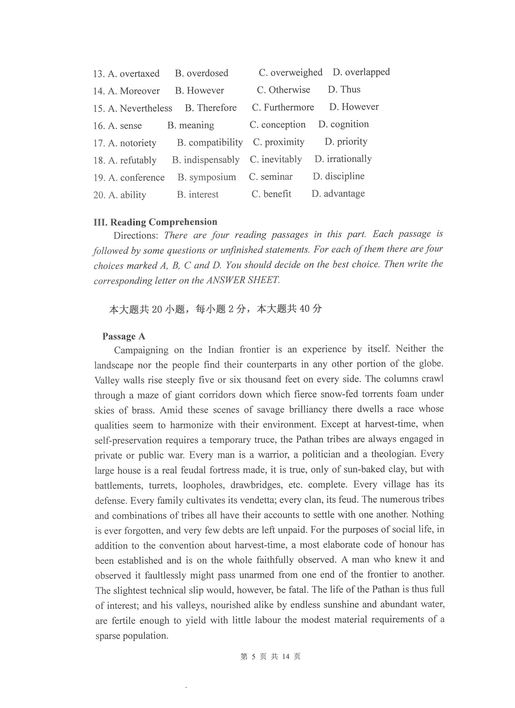 杭州电子科技大学考研辅导班:杭州电子科技大学2017年研究生招生考试基础英语科目考试题目