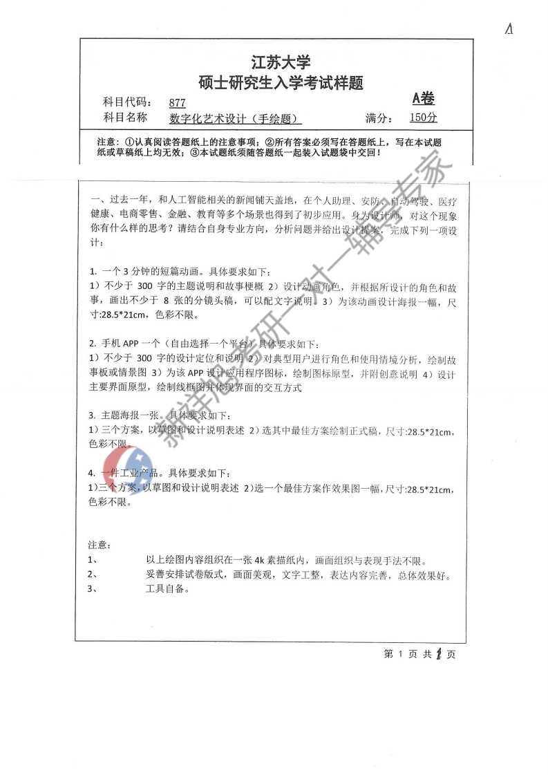 江苏大学考研辅导:江苏大学2019年877数字化艺术设计(手绘题)初试考研真题