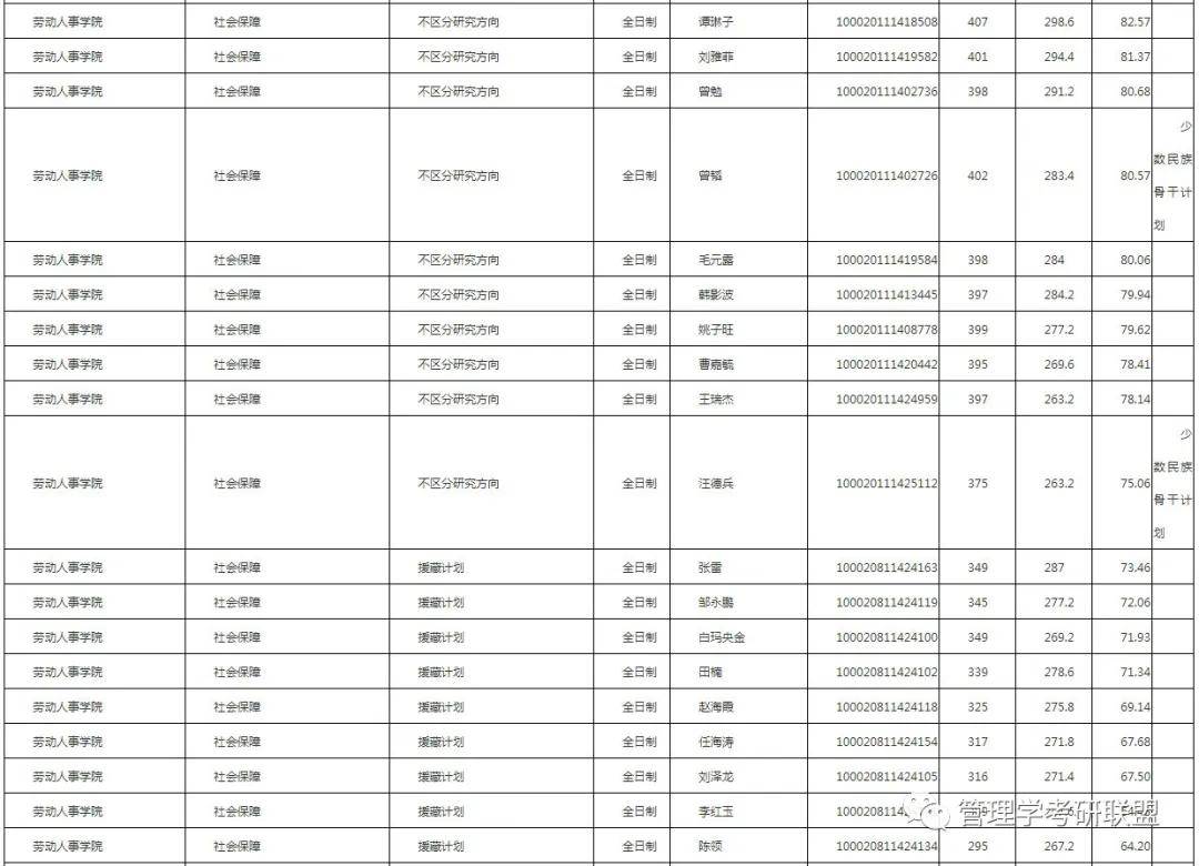 社会保障统考拟录取10人,含少干2人,最低分395,最高分407;另援藏计划9人