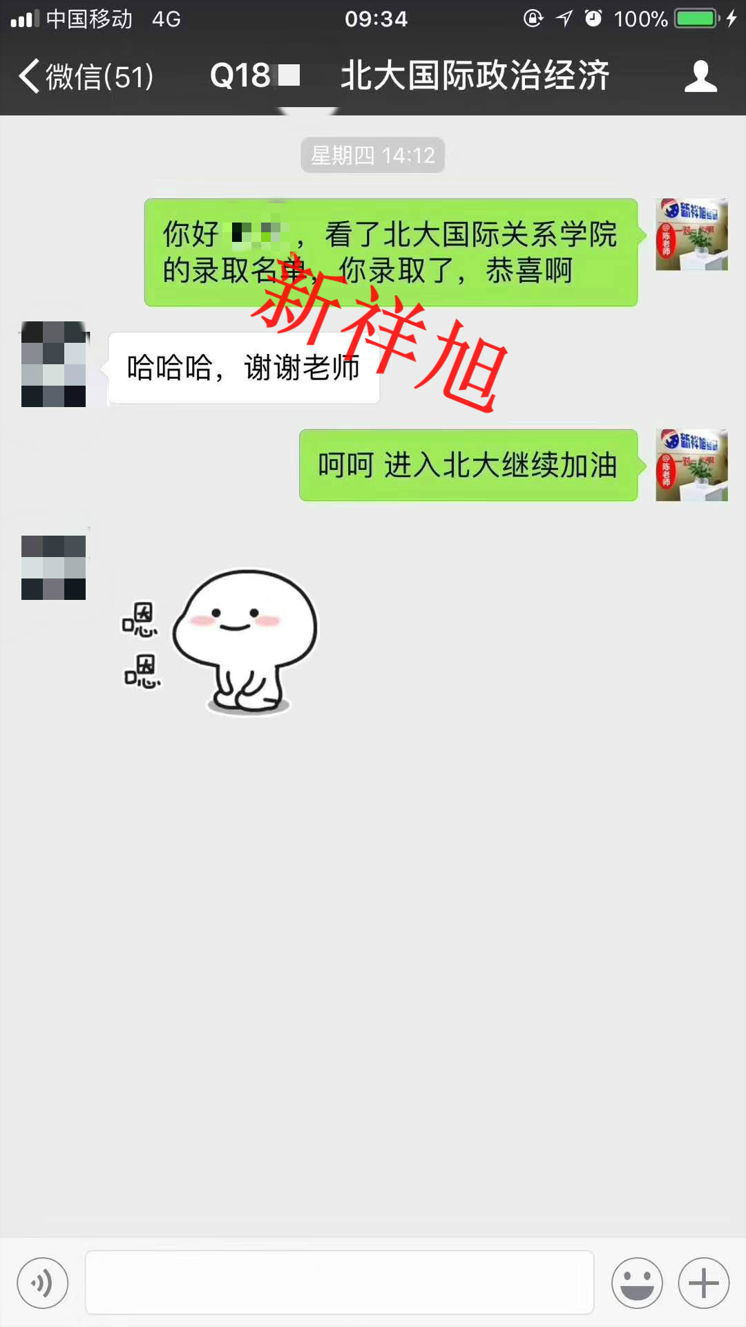 喜报:恭喜新祥旭2018年学员陈同学被北京大学政治学成功录取
