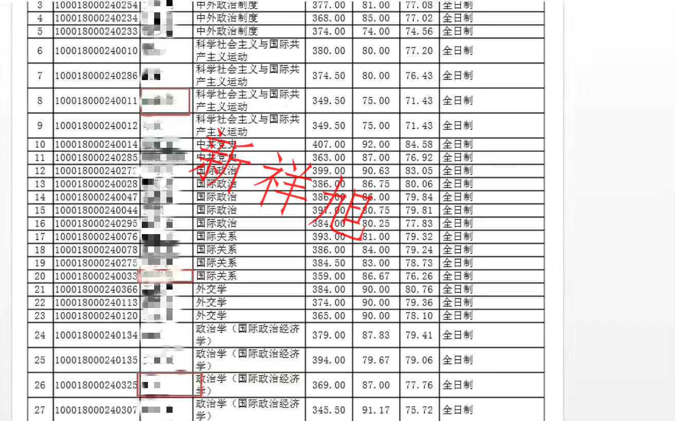 2018年新祥旭北京大学政治学张学员拟录取名单: