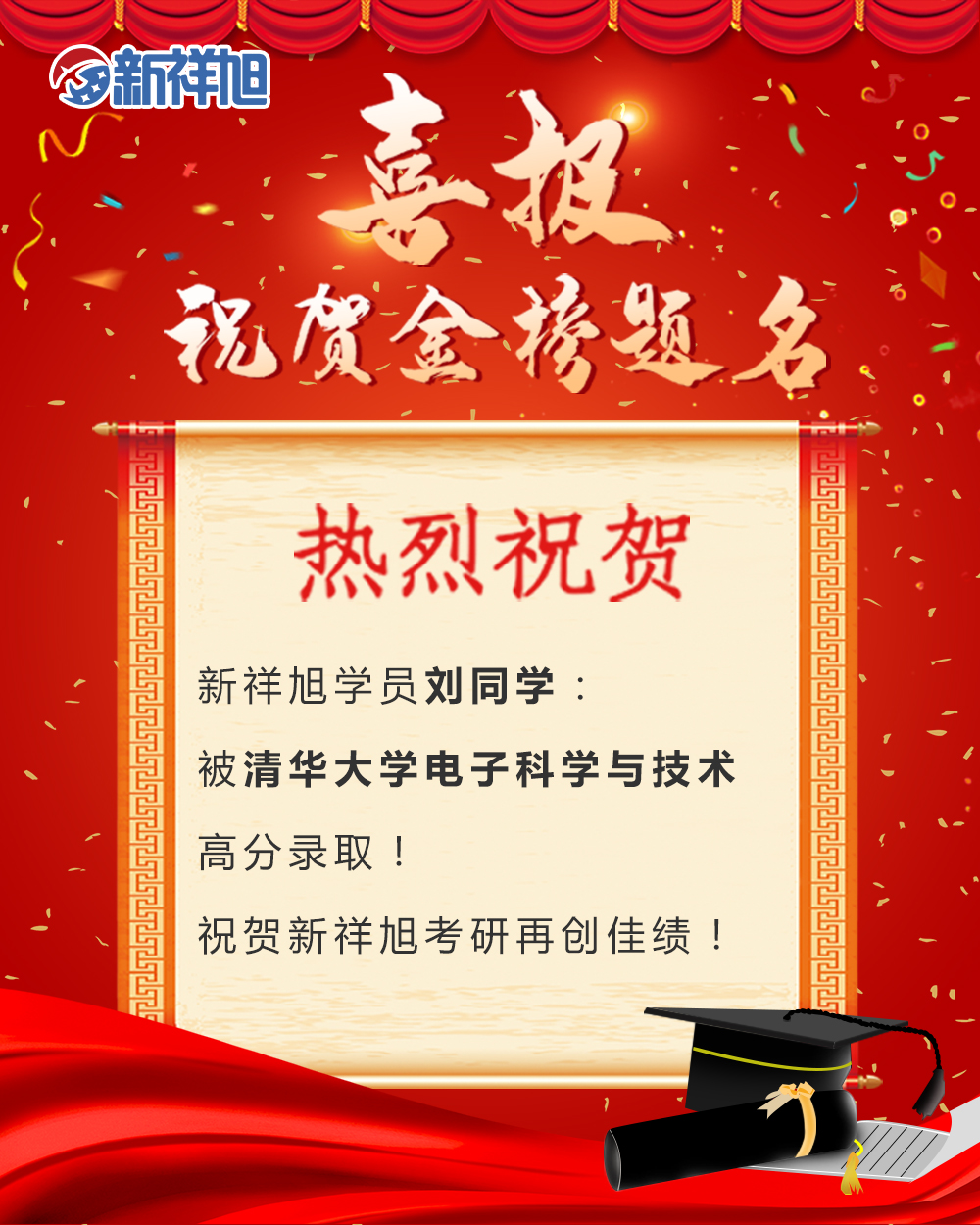 喜报:恭喜新祥旭2018年学员徐同学被清华大学电子与通信工程专业成功录取
