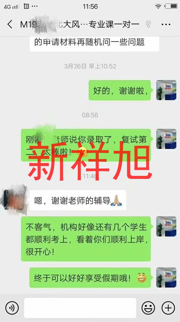 2019年新祥旭学员北京大学风景园林冯同学与教务老师聊天截图: