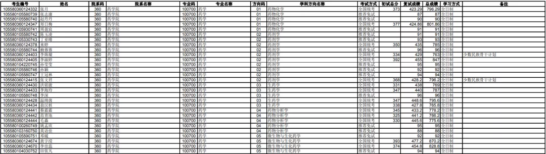 (1) 101 思想政治理论 (2) 201 英语一 (3) 349 药学综合 复试专业课:3605010 药学综合C |