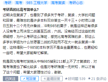 昨天,知乎上一个话题引起了罗老师的注意:“考研真的比高考简单吗?”以前,常听人说考研简单,一段时间之后再听就是考研难了,而现在大家口中的考研都是越来越难。那么考研的难度到底几何,既然大家都参加过高考,那么那这比较确实也比较只管,今天我们就来聊聊吧。