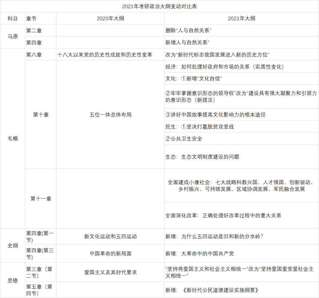 2021考研大纲变化大合集