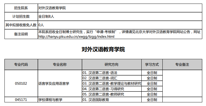 北京大学考研辅导班:2021北京大学对外汉语教育学院考研招生目录