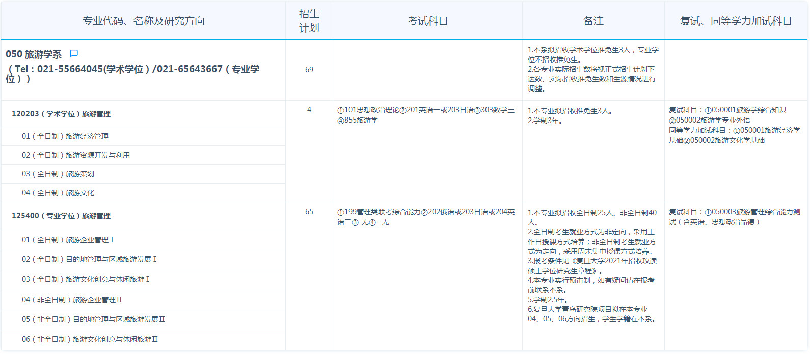 复旦大学考研辅导班:2021复旦大学旅游学系考研招生目录、招生人数、考试科目