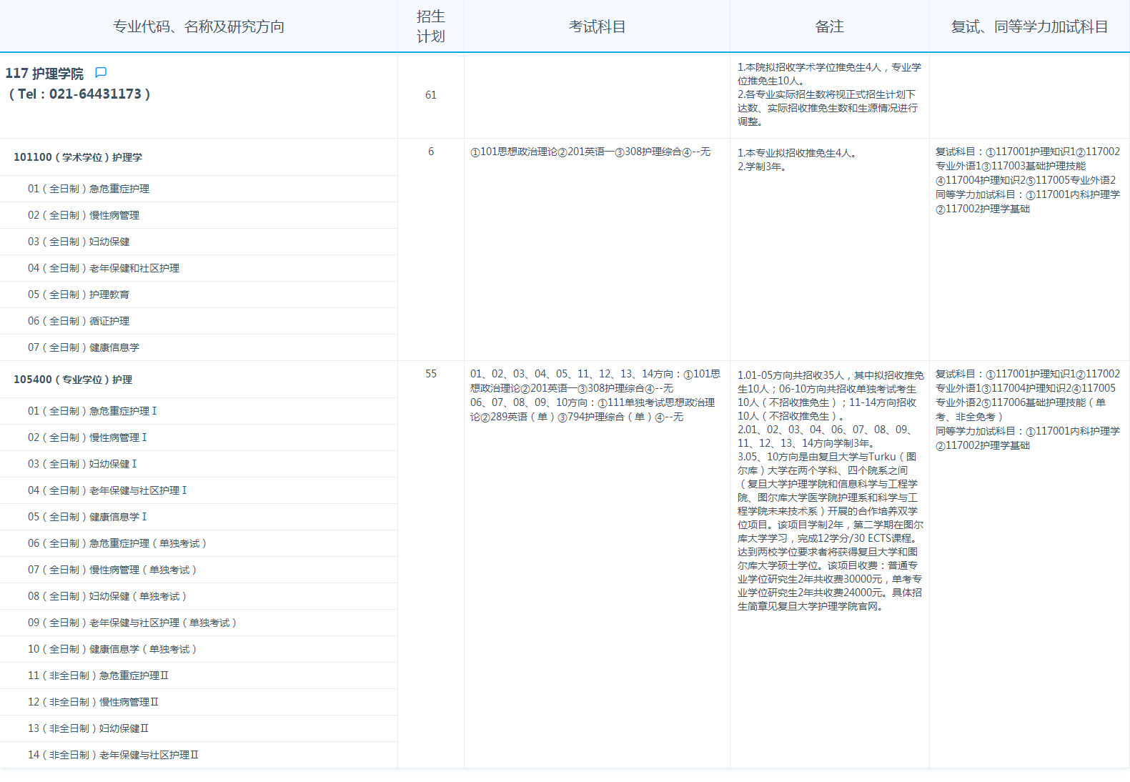 复旦大学考研辅导班:2021复旦大学护理学院考研招生目录、招生人数、考试科目