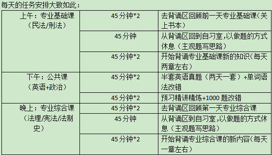 专业课复习前期把大段时间要放在法律基础上面,这些注重理解,看书时应该没什么看不懂,但是理解会有偏差,听听课还是很重要,有时老师上课讲的拓展的东西书上是没有的,或者你是理解错了,所以要听。后期就是做做题,重视错题,重视近五年的真题,重要的知识点是会重复考察的。然后后面的简答,案例分析应该对照着标准答案,学学法言法语,答案格式。