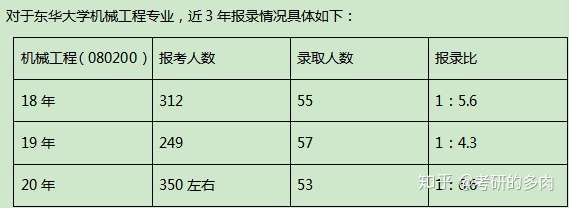 从近三年的报录情况也可以看出,东华大学机械工程(080200)专业每年录取的人数都在55人左右,而机械工程(085201)专业每年录取人数都在递增,今年由于疫情原因,扩招力度很大,录取人数也增长了许多。因此,东华大学机械工程学硕录取有一定的难度,专硕相对而言就要轻松很多。