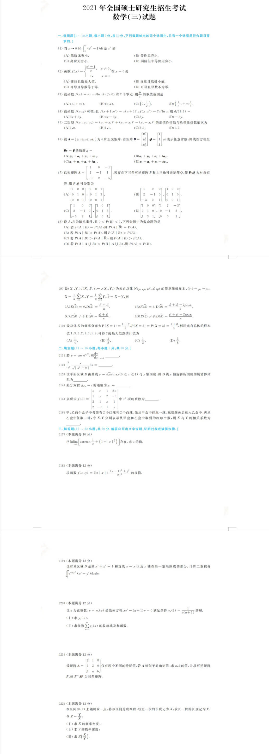 新祥旭一对一辅导为各位考生安排了新鲜出炉的数学三的真题: