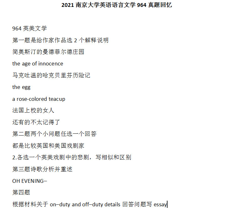 新祥旭考研:2021南京大学英语语言文学964真题回忆
