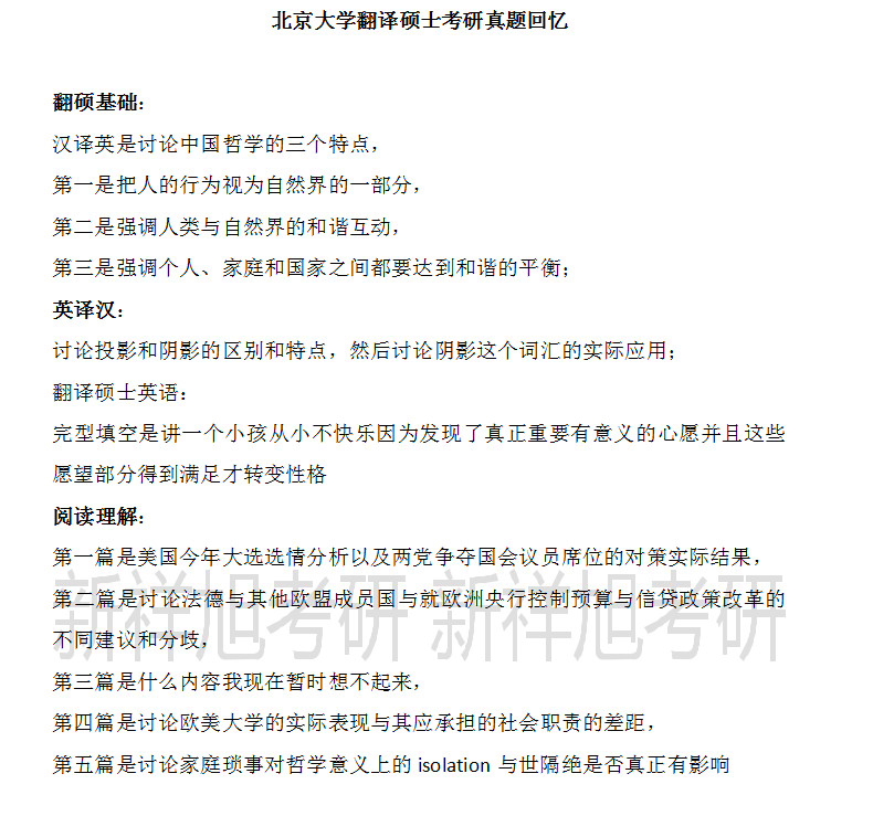 新祥旭考研:北京大学翻译硕士2021年考研真题回忆