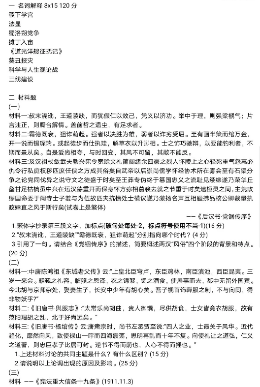 2021年首都师范大学中国史考研专业课真题