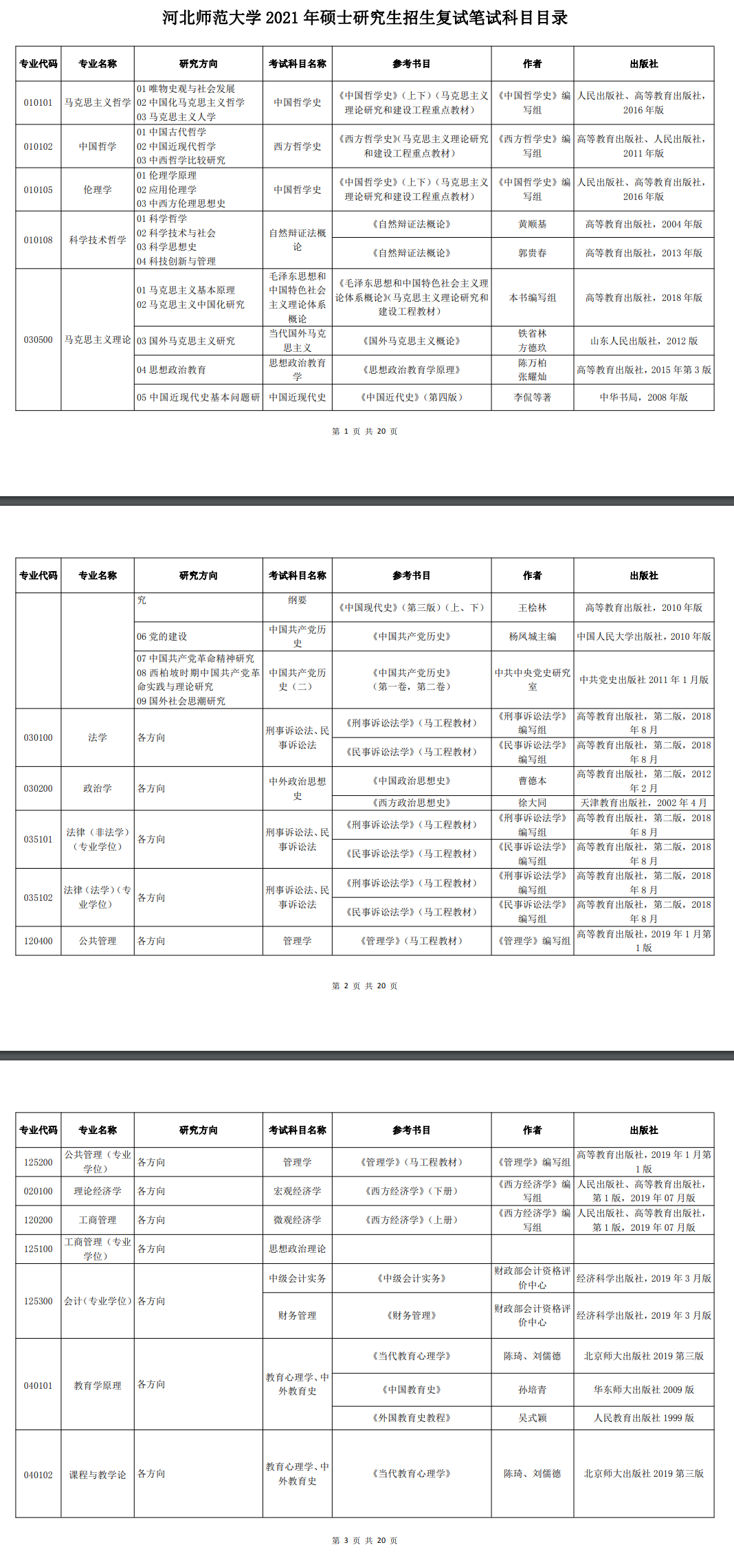 2021年河北师范大学硕士研究生考研复试笔试科目及参考书公布