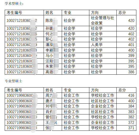 1、社会学专业学术型硕士:按专业分方向,根据考生总成绩从高到低依次录取。总成绩相同时,按初试总分从高到低依次录取。复试不合格考生不予录取。