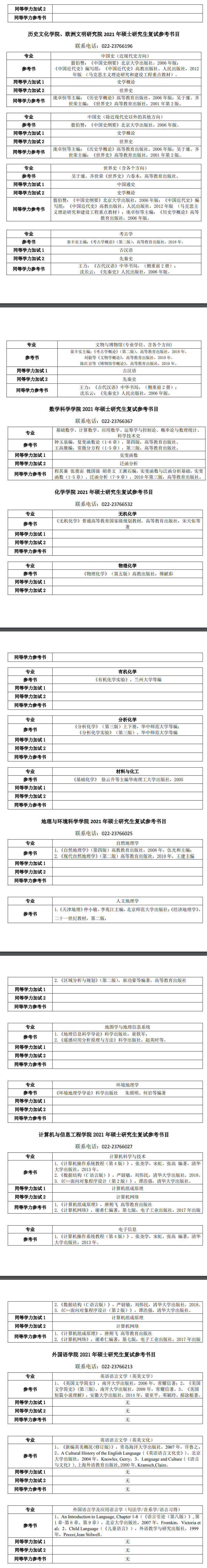 2021年天津师范大学各院系硕士研究生考研复试参考书目