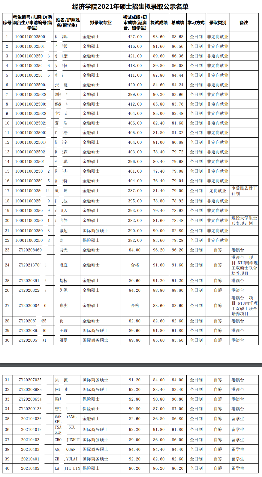 2021年北京大学经济学院硕士研究生招生拟录取名单公示