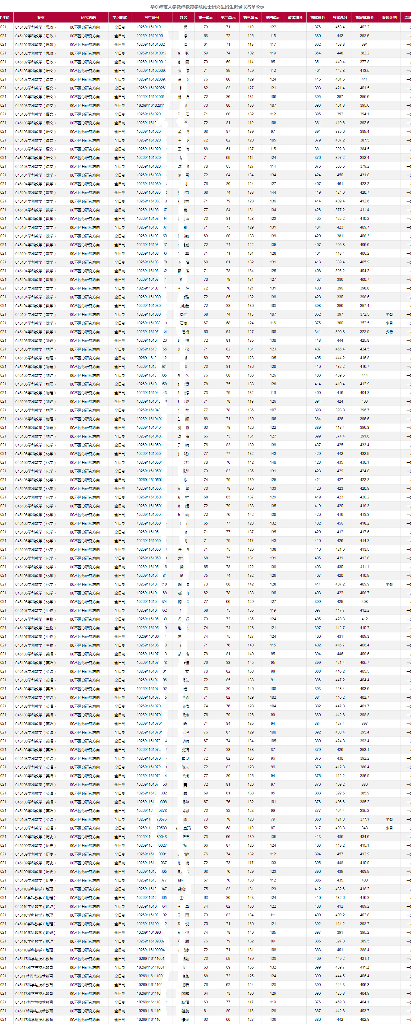 2021年华东师范大学教育教育学院硕士研究生招生拟录取名单公示