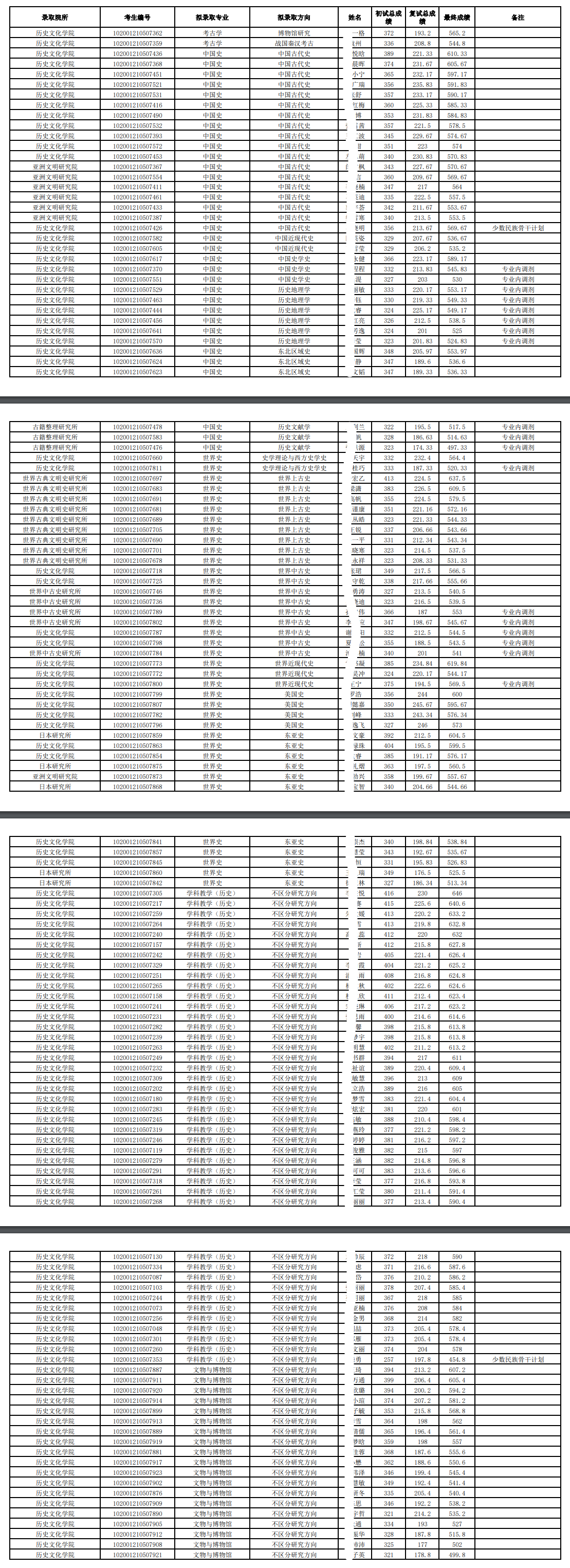 2021年东北师范大学历史文化学院硕士研究生拟录取名单