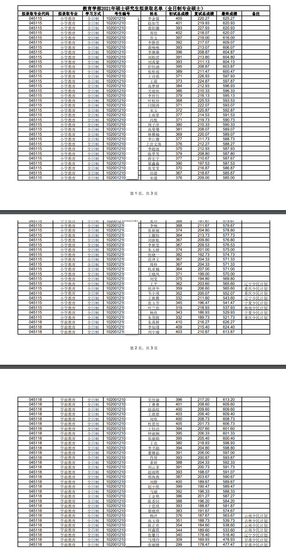 2021年东北师范大学教育学部硕士研究生拟录取名单(学术型硕士)