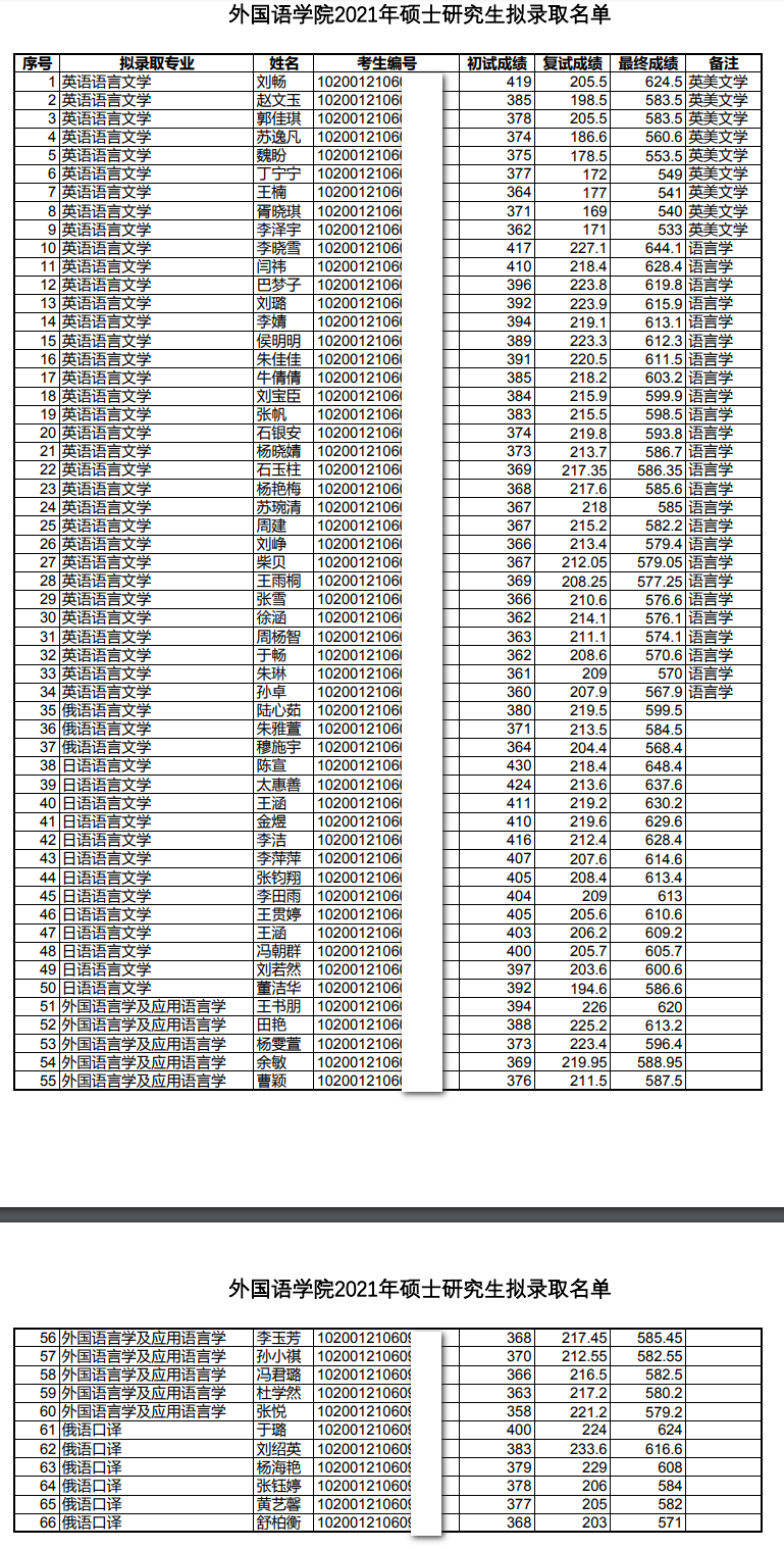 2021年东北师范大学外国语学院硕士研究生拟录取名单