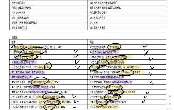 这个打底的过程之前也说了是上了课之后开始有了一个大概的轮廓,然后我将每年的考题按三种题型总结到了一起,大概是这样子。就可以对出题策略有一个大致的了解。比如名词解释可能会有人名、艺术流派、美学观点、等等,还可以对难易程度有一个自己的估测,在平时看书的时候就会有一个自己的侧重点。