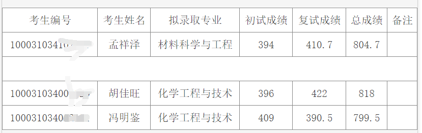 2021年清华大学化学工程系硕士研究生考研复试情况及拟录取名单