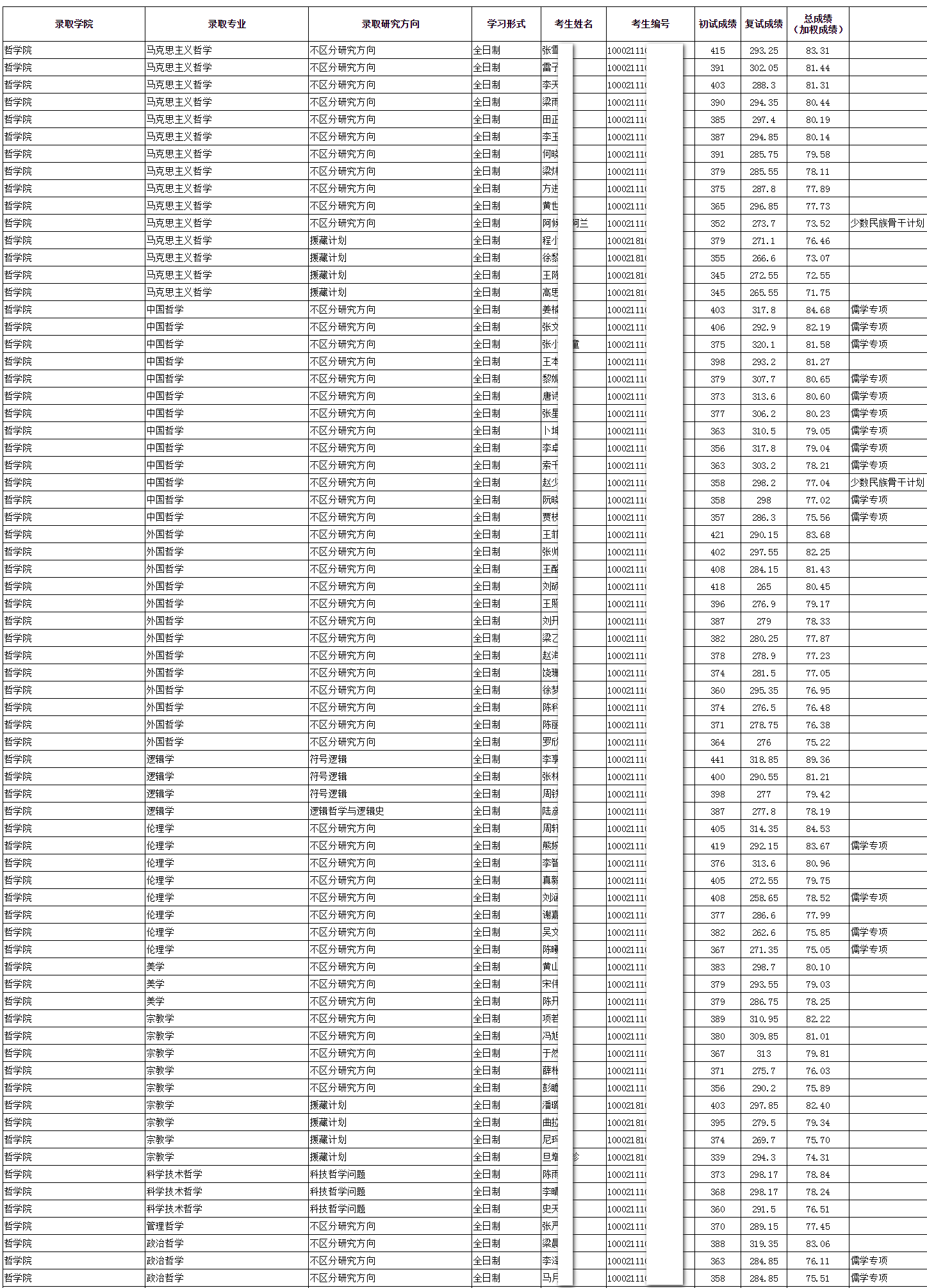 2021年中国人民大学哲学院硕士研究生招生拟录取名单