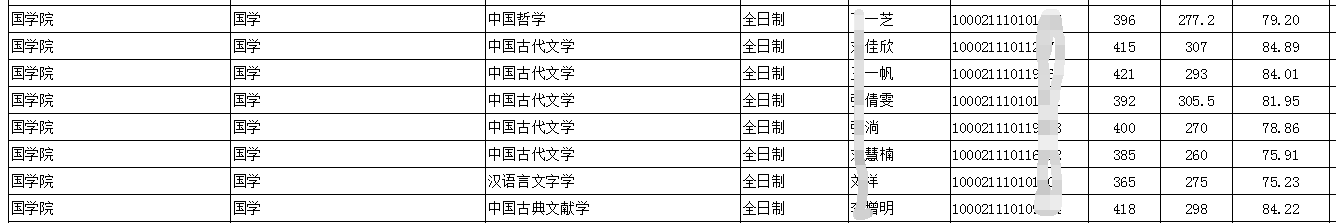 2021年中国人民大学国学院硕士研究生招生拟录取名单